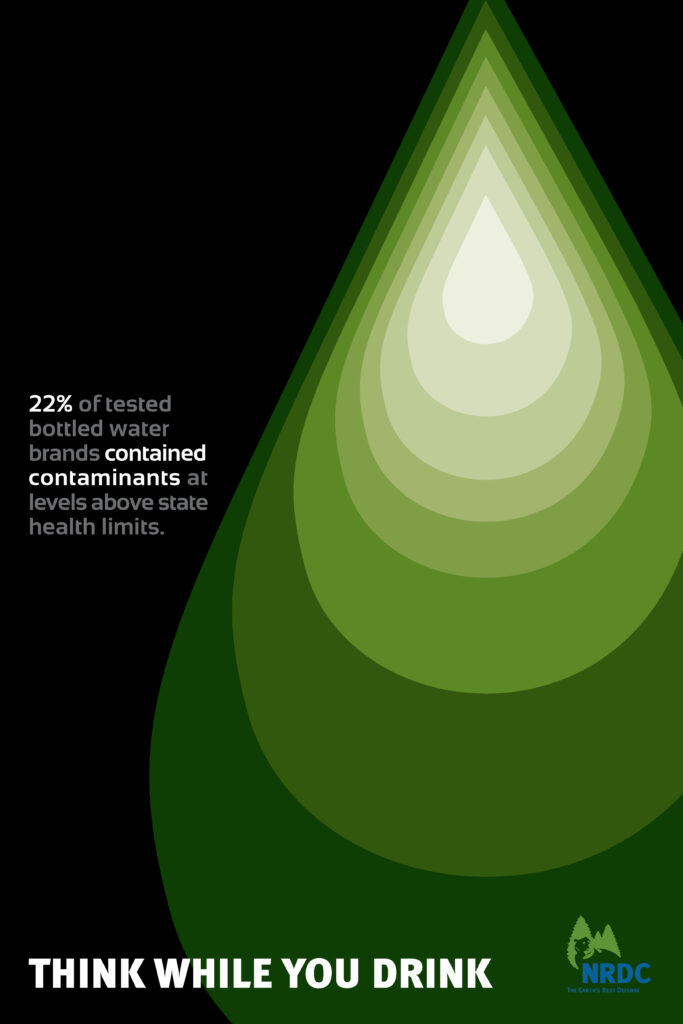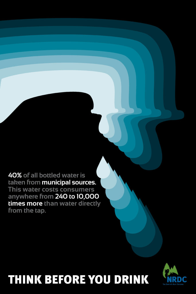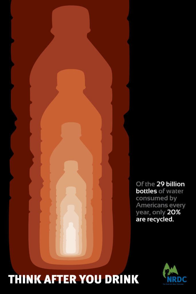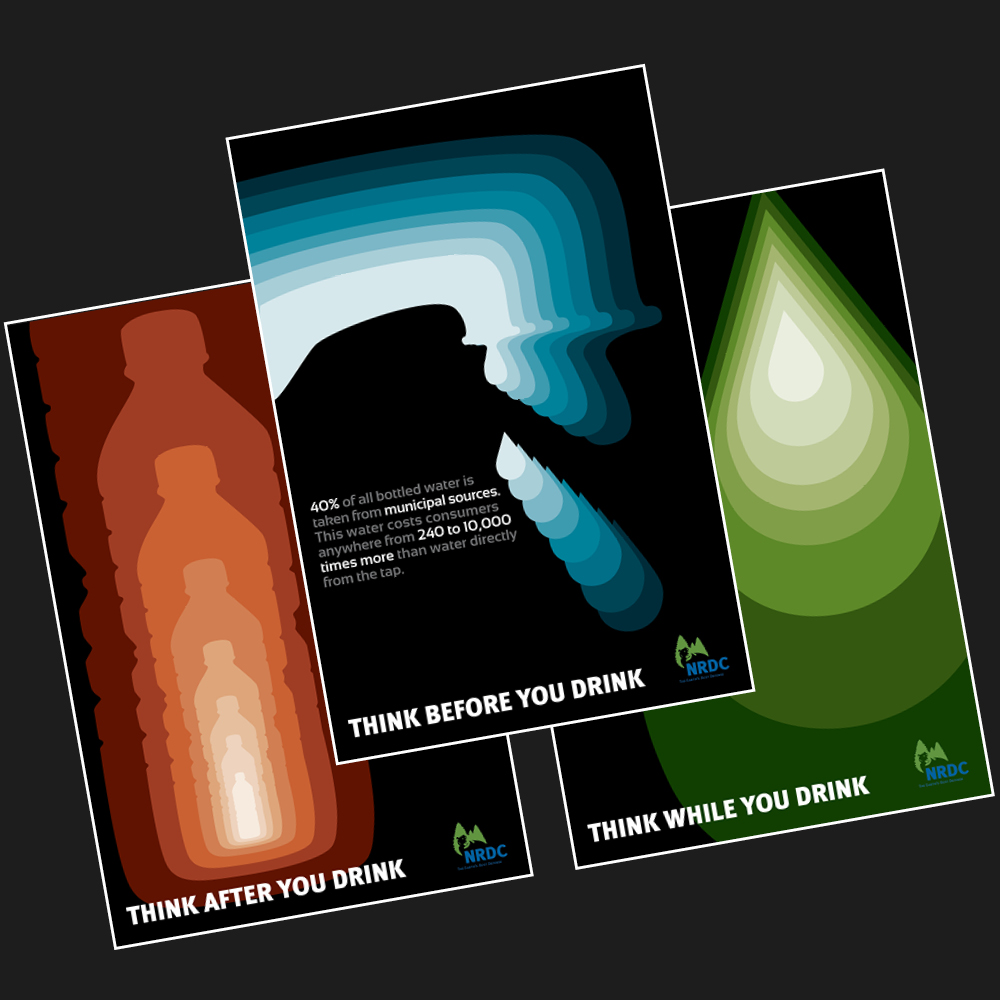 The above poster campaign was designed to support the mission of the National Resources Defense Council, Inc. in hopes of persuading consumers to consider choosing tap water in a reusable container and remembering to recycle plastic drink bottles whenever possible.